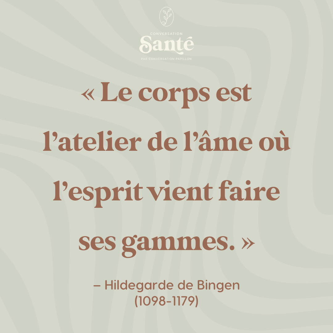 Pourtant, Sainte Hildegarde a été la première à dire que le corps est l'atelier de l'âme où l'esprit vient faire ses gammes.